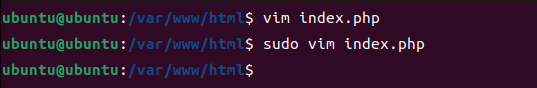 4. vim index.php (저장이 안될 경우 sudo 명령어로 다시 실행)